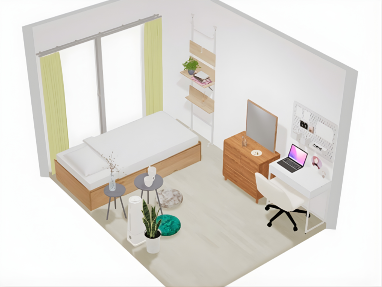 レイアウト例|【1K・8.5畳】猫と住む、北欧×韓国インテリアの大人かわいい一人暮らしコーデ - 淡いグレーとホワイト、ナチュラルウッドを基調にした、落ち着きとかわいらしさを両立した1Kワンルームレ… 新着コラム記事