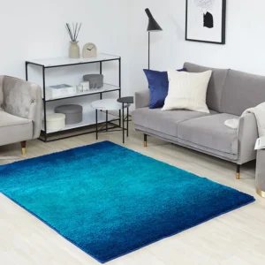 LOWYA|長方形ラグ オールシーズン 防音 ブルー