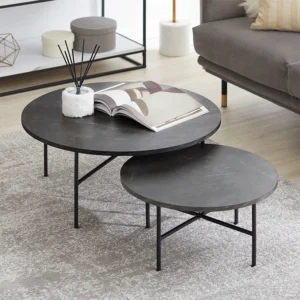 LOWYA|大理石柄ネストテーブル ダークグレー/ブラック