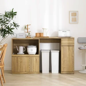 カウンターを活用した対面風キッチンが特徴で、家電や小物をコンパクトにまとめながら、調理スペースを広く保てるよう工夫されています。