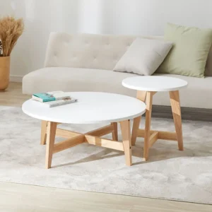 LOWYA|[2個セット] 北欧風丸テーブル 木脚 ホワイト/ナチュラル