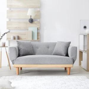 LOWYA|[幅130] 2人掛けソファ ソファベッド 天然木脚 ファブリック グレー