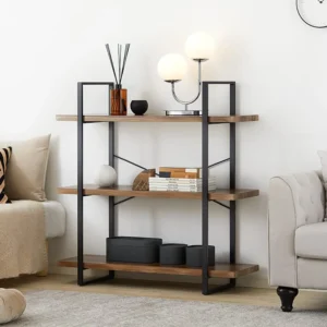 LOWYA|シェルフ 見せる収納 ディスプレイラック スチール 木目調 モルタル調リビング収納 ウォルナット