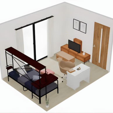 1K レイアウト例|【1K・6畳】限られた6畳空間を広く見せる、直線的で無駄のない家具配置 6畳(約10㎡)の1Kに、ベッド・デスクを配置したレイアウト例です。限られた空間を広く見せるポイントを紹介します。※本記事にはアフィリエイトリンクが含まれます。(リンクから購入されると、当サイトに収益... 2025.09.19 1K
