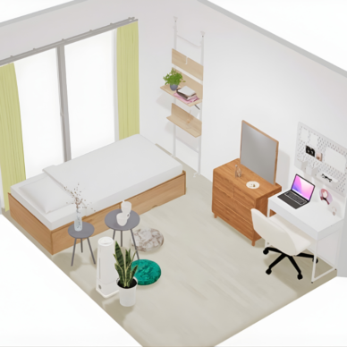 レイアウト レイアウト例|【1K・5畳】縦長・長方形でもすっきり整う、ワークスペース付きナチュラルインテリア 5畳の縦長・長方形1Kにベッドとワークスペースをバランスよく配置したレイアウト実例。LOWYAのシャビーナチュラル家具を中心に、収納付きベッドや突っ張り棚で縦の空間を活かしたコンパクトな一人暮らしインテリアを紹介します。 レイアウト