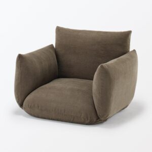 曲線を強調したむっちりとしたフォルムが、置くだけで空間の主役になる一人掛けフロアソファです。ピュアウレタンを贅沢に用いた厚みが体を包み、背中まで届くハイバック形状が自然な姿勢を支えます。