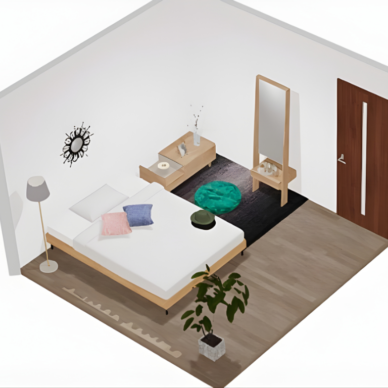 レイアウト レイアウト例|【7畳】正方形の寝室にダブルベッドをゆったり配置した落ち着き空間