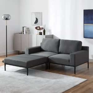 LOWYA|2人掛けカウチソファ スチール脚 オットマン付き レイアウト自在 グレー