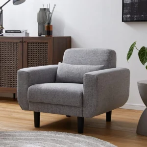 肘掛けのないアームレスソファは、同じ座面幅でも見た目がすっきりし、圧迫感を抑えやすいのが特徴です。肘掛けがない分、横からの出入りがしやすく、動線を確保しにくい狭い部屋では特に重宝します。