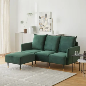 LOWYA|ベルベット調 3人掛けカウチソファ グリーン