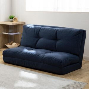 約120cm幅と奥行66cmのコンパクトサイズながら、内部にはウレタンフォームをたっぷり詰めているため底付き感が少なく、簡易ベッドとしても使えます。座面高は22cmと低めで床座り感覚に近く、狭い部屋でも視線が低くなるため部屋を広く見せたい方に適しています。