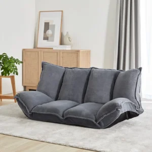 SNSで2200万回以上再生されたことで話題になった2人掛けのリクライニングフロアソファです。背もたれは42段階、肘掛けは独立して14段階の角度調整ができるため、読書やテレビ鑑賞、昼寝などシーンに合わせて好きな姿勢を作れます。