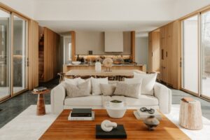 ソファの向きを部屋の中心側に少し開くと、空間全体に馴染みやすくなります。